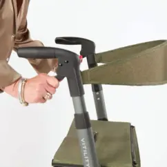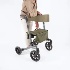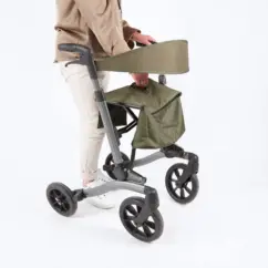 The rollator is compact due to the double-folding system and is easy to use. The rollator has a pleasant seat and backrest and is equipped with ergonomic and height-adjustable handles for a better grip. Includes a manual braking system with concealed brake cables, which gives the rollator an attractive look.