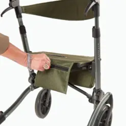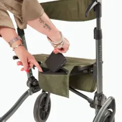 Under the seat is a large bag for safe storage of belongings and a bag that fits a smaller wallet. These bags are attached to the walker and can be closed with a zipper to prevent theft.
